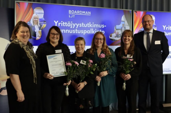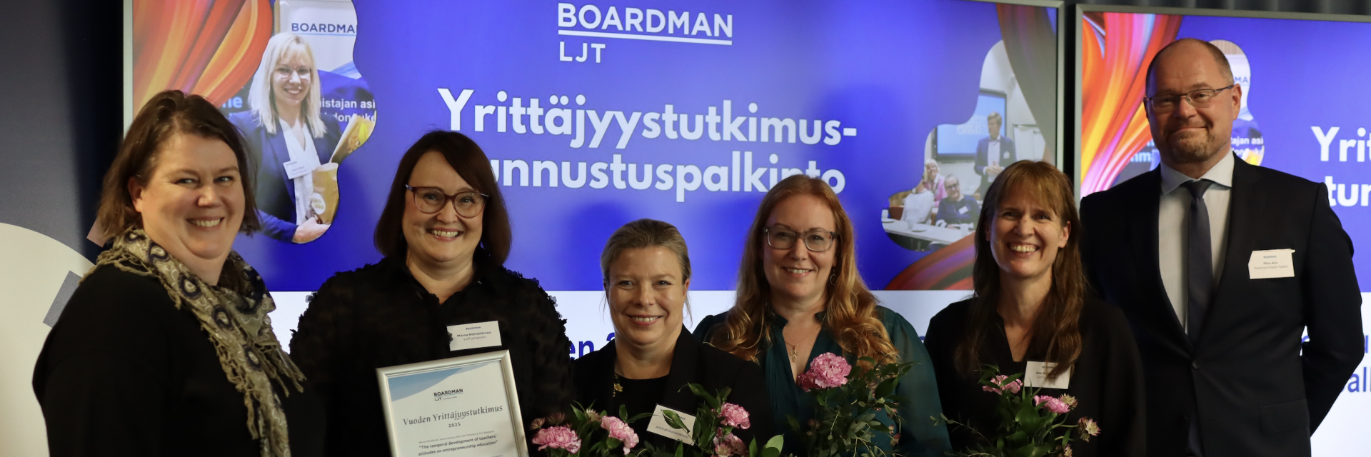 Boardmanin Liikkeenjohdollinen tutkimusryhmä (LJT) on myöntänyt Vuoden Yrittäjyystutkimus -tunnustuspalkinnon tutkimukselle, joka tarkasteli suomalaisten ammattikorkeakoulujen opettajien asenteita yrittäjyyskasvatusta kohtaan kolmen vuoden aikana.