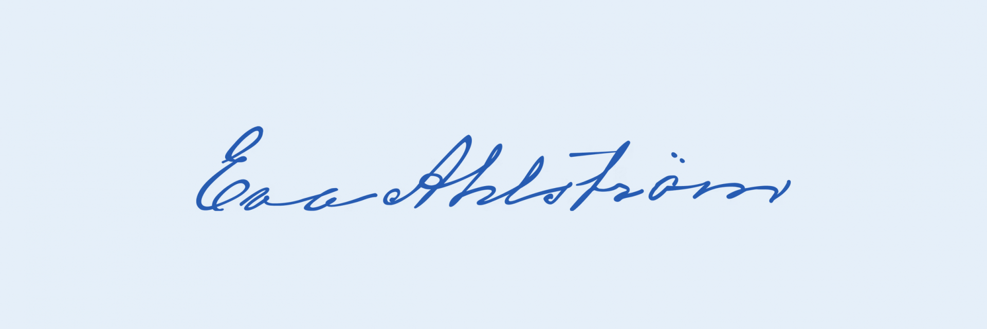 ”Perustimme Eva Ahlströmin säätiön jatkaaksemme Eva ja Antti Ahlströmin perintöä. Eva ja hänen puolisonsa Antti uskoivat, että yrityksen tulee kantaa vastuuta yhteisöstään. He edistivät yhteistä hyvää mm. tukemalla taidetta sekä perustamalla paikallisia sairaaloita ja kouluja, vahvistaen näin koulutusta ja tasa-arvoa.”
